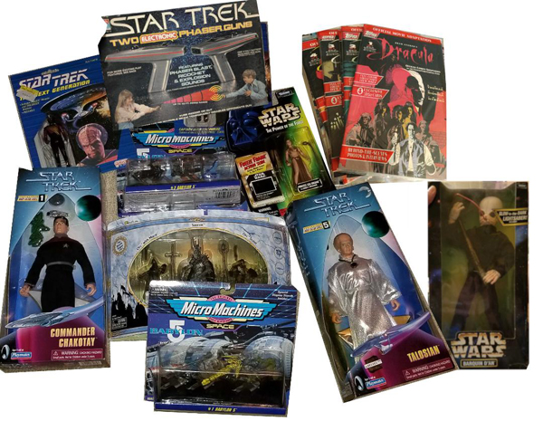 action figures, ships (mostly Star Trek), Micro Machines,